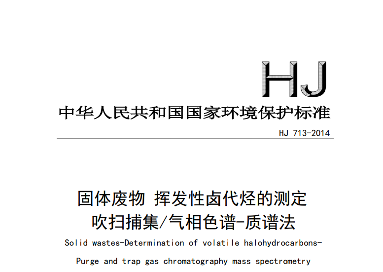 HJ 713-2014 固體廢物 揮發(fā)性鹵代烴的測(cè)定 吹掃捕集氣相色譜-質(zhì)譜法 本標(biāo)準(zhǔn)規(guī)定了測(cè)定固體廢物中揮發(fā)性鹵代烴的吹掃捕集/氣相色譜-質(zhì)譜法。 本標(biāo)準(zhǔn)適用于固體廢物和固體... 更新日期:2020-04-01 下載包(1)